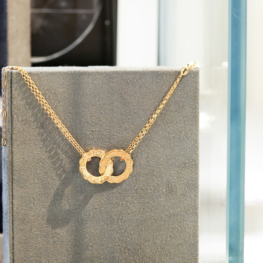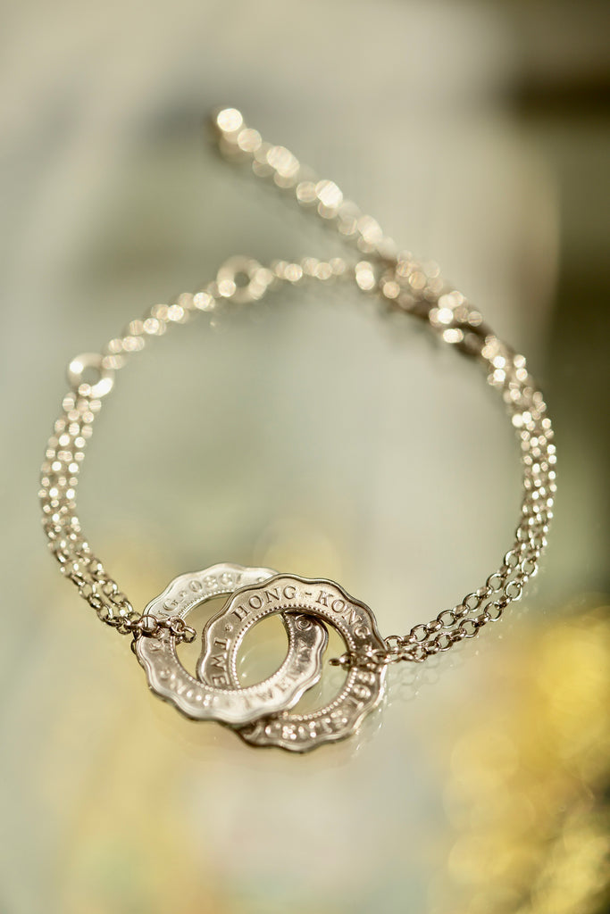 這款Aura Bracelet將香港 #五仙 巧妙扭轉為光環形狀,再互相扣連;硬幣表層鍍上 18K 黃金或白金,而手鏈配件則為 925 銀。具體地,讓我們將屬於香港的光環戴在手上。
