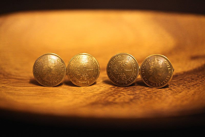 Wearable history - Cufflinks made of real and circulated old Hong Kong 10 cents coins.
